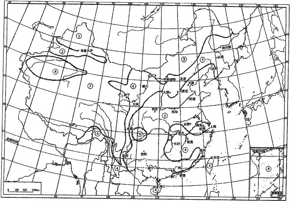 圖E 夏季空氣調(diào)節(jié)設(shè)計(jì)用大氣透明度分