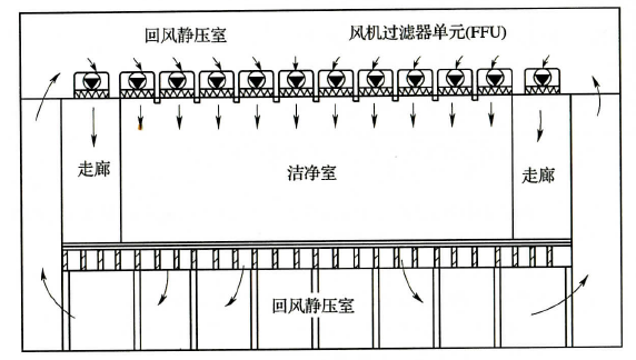圖2 風(fēng)機(jī)過(guò)濾器單元送風(fēng)方式(FFU)示意圖